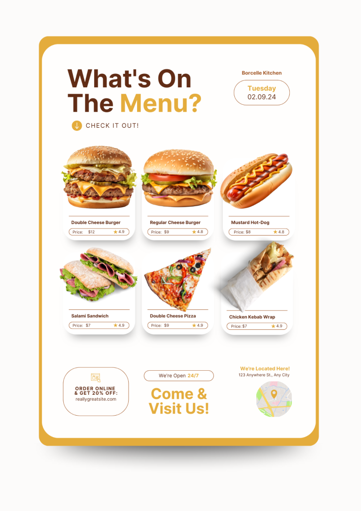 The right flyer can make a diner’s mouth water just by looking at it. Imagine a beautifully designed restaurant flyer showcasing your new seasonal menu, complete with vibrant photos of your most popular dishes. This isn’t just a handout; it’s a promise of a great meal. For take-out and delivery businesses, a well-placed menu flyer is an absolute must-have. It serves as a constant reminder of your delicious offerings, conveniently placed on a customer’s fridge for their next craving.